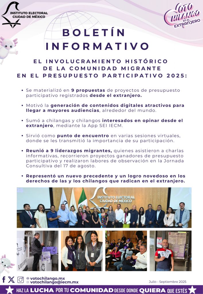 - Cámara de Diputados organizará el Foro “Voto de las mexicanas y mexicanos desde el extranjero: camino a la reforma electoral”.