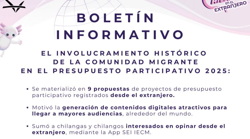 El boletín electoral es una herramienta digital de publicación mensual que sintetiza la información actualizada sobre temas político-electorales. Incluye noticias sobre el voto de los mexicanos en el extranjero, información sobre credencialización, estadísticas sobre los procesos electorales y consultivos de la capital, así como lo más relevante de las actividades del IECM y del Instituto Nacional Electoral.